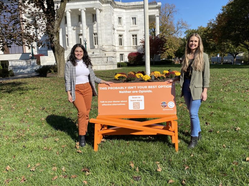 We have created a physical design change in the form of a bench that promotes the public to ask their doctors about alternatives to opioids.